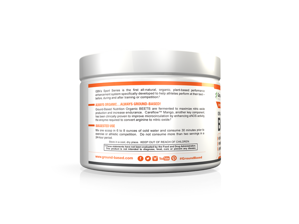 USO SUGERIDO: mezcle una cucharada en 6 a 8 onzas de agua fría y consuma 30 minutos antes del ejercicio o la competencia atlética. Puede consumirse dos veces al día para obtener resultados óptimos. Las Remolachas orgánicas de GBN son 100% orgánicas y libres de transgénicos sin azúcares añadidos, rellenos o ingredientes artificiales.